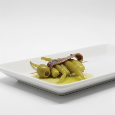 Prepared with Lodosa D.O. peppers which are stuffed with quality bonito, accompanied by a tartare sauce and dressed with a sherry vinaigrette. Freshly prepared. This is one of Bar Martínez’s specialities and its secret lies in the quality of the ingredients.